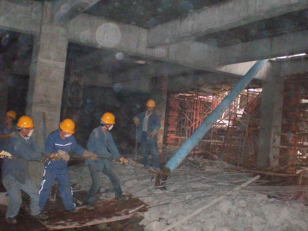 針對作業面在地下負二層,光線較差、通風不暢,同時土建單位正在拆除臨時支撐,施工現場工作環境相當惡劣等情況。為保證現場施工正常有序的進行和施工人員身體健康,項目部采取相應措施保證了整個現場的安全、照明、通風。施工人員發揚四化建吃苦耐勞、敢打敢拼的精神,長期冒雨作業。吊裝中有吊機運行不到的地方,就積極開動腦筋,用技巧、經驗和人力,保證前期設備及管道的吊裝倒運,為后期的施工做好了良好的鋪墊。