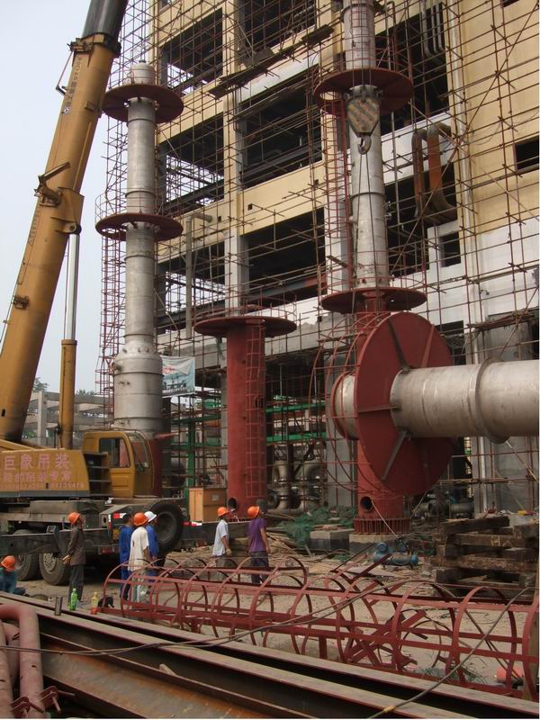 在自貢市昊順縣工業園戰斗著一支敢打、敢拼的鐵軍,這就是一處川南項目部全體職工。今年5月一處承接了昊華西南化工有限公司2kt/a纖維及PPS樹脂的安裝任務。8月12日,在項目經理高國勝的帶領下,全體職工頂著42度高溫,經過3個晝夜的吊裝,四臺千噸重的反應塔現已安全就位,正進入緊張的安裝工序。經過2個多月的艱苦奮戰,現已完成了工程百分之八十以上任務。