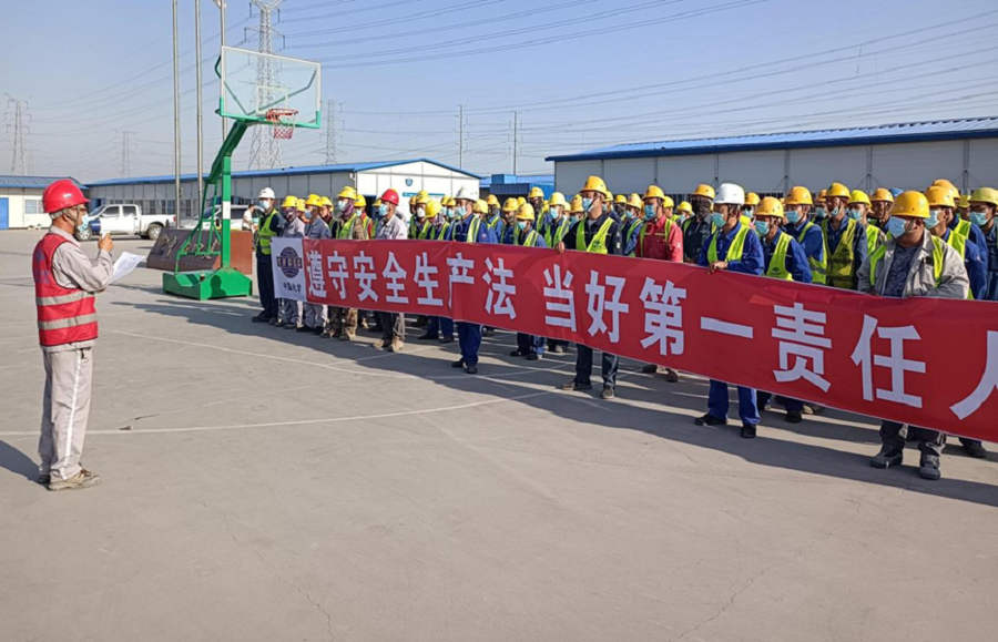 6月1日,華北公司日照旭科新材料項目部舉行2022年“安全生產月”活動啟動儀式。華北公司黨支部書記、經理吳世慶參加儀式并講話。華北公司副經理、日照項目經理張軍峰及項目部全體人員共同參加了啟動儀式。