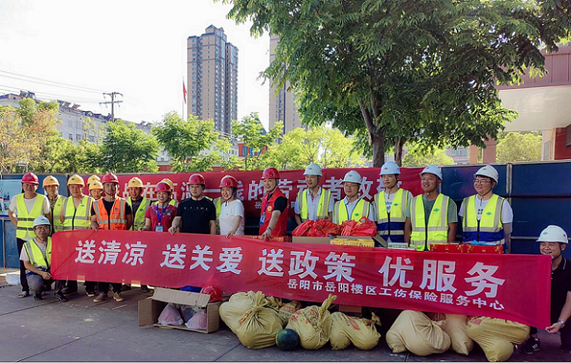 近日,岳陽樓區人社局副局長彭可軍、工傷保險服務中心主任李平平一行來到市政工程公司岳陽市政府地塊雨污分流改造工程朝陽小學片區現場,開展“送清涼、送關愛、送政策”活動,為工友們送來清涼飲料、云南白藥氣霧劑、藿香正氣水等一系列降溫防暑物品,并耐心講解工傷保險業務辦理流程等相關政策規定。同時,叮囑大家做好防暑降溫工作,避開高溫作業,保障自身安全也保障工程質量。