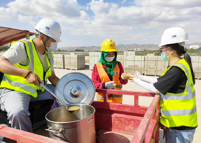 近日,西部公司蘭州榆中項目開展“防暑降溫送清涼進工地”活動,將熬制好的綠豆湯和防暑藥品送到一線工人手中,給他們送上炎炎夏日里的一份清涼和慰問。