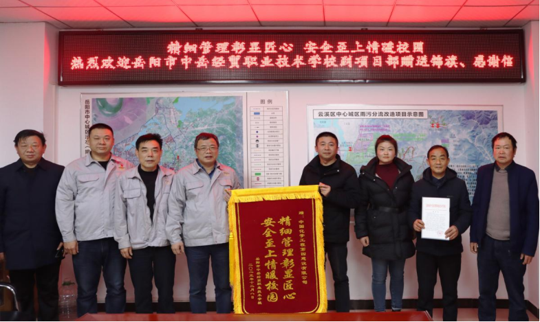 岳陽污水治理項目部獲中岳經貿學校贈送錦旗和感謝信