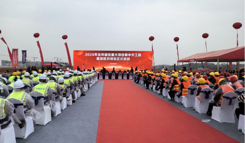 公司將承建此次集中開工儀式中的晨辰醫藥項目。在集中開工儀式過后,該項目作為岳陽縣分會場的代表項目舉行了項目奠基儀式。該項目總投資5億元,主要生產超高純度核酸原料及相關產品,全部建成投產后預計可年創稅收3000萬元以上。
