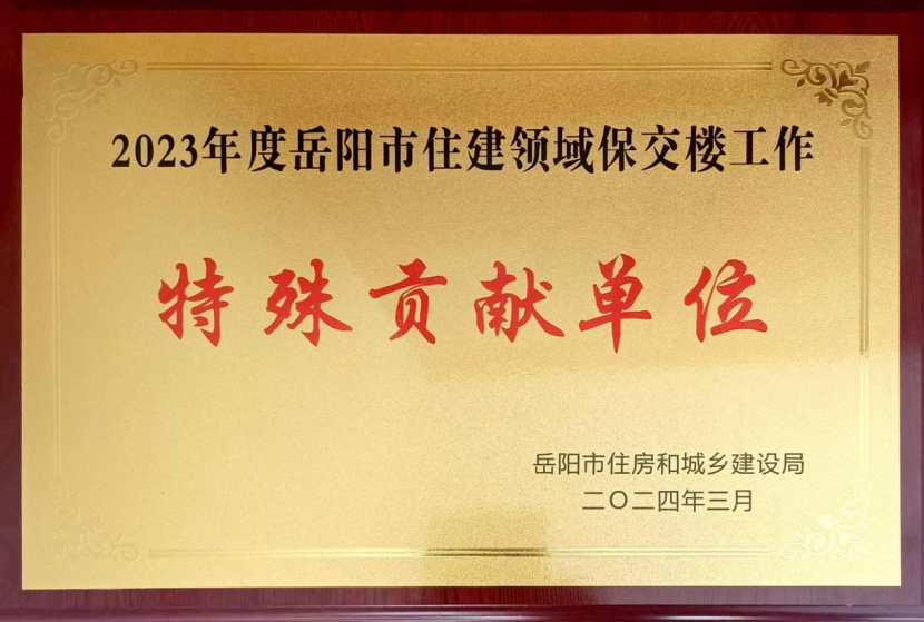 3月11日,在岳陽市住建局召開的全市住房城鄉建設工作會議上,公司榮獲2023年度岳陽市住建領域保交樓工作“特殊貢獻單位”稱號。