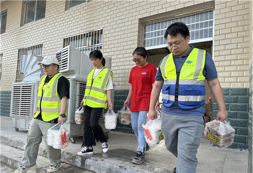 在抗洪救災的號角吹響后,市政公司綜合辦迅速響應,主動擔當,第一時間做好了應急部署和資源調度?!爸茏有酆皖櫾瞥蹦銈円敽孟蠕h,靈活響應各方需求;李穎負責聯(lián)系各大商家平臺,確保前線救援人員有充足的熱食供應;唐夢婷去對接災區(qū)村委,盡可能多的協(xié)調到休息場地,讓疲憊的救援隊伍能夠得到及時修整?!本C合辦的“家長”吳果葉逐一給每個人分配著任務,她的聲音清晰而堅定。