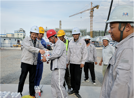7月19日-25日,華東公司主要負責人先后赴山東裕龍、上海華誼、上海璞烯晶和嘉化二期等項目走訪慰問,為一線施工人員送去防暑降溫物品,并開展了防暑降溫常識普及和職工安全健康相關法規政策宣貫活動;同時,叮囑大家樹牢安全意識,注意防暑降溫,以健康的身體和飽滿的狀態投入到工作中去,為公司高質量發展作出新的更大貢獻。