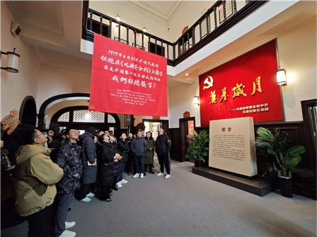一條條閃耀著紅色光輝的“尋訪路線”,織就起青馬學員在津沽大地的“紅色學習地圖”。踏入平津戰役紀念館、周恩來鄧穎超紀念館,青馬學員通過珍貴的革命文物、紅色影像以及震撼的實景搭建,更加真切地了解到革命先輩們的英勇事跡;觀看天津張園“沉浸式”演繹展《津門往事》,體驗實景“解密式”《破曉》項目,青馬學員在“頭腦風暴”中“解鎖”展廳故事,厚植愛國情懷。學習期間,還開展了“重走長征路”“黨史一點通”等紅色素質拓展活動。