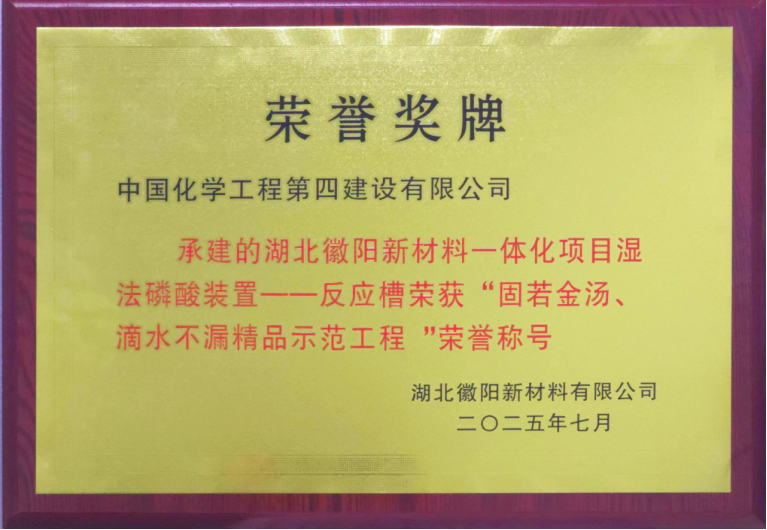 近日,由中南公司承建的湖北徽陽新能源新材料項目核心裝置——濕法磷酸反應槽,以“零缺陷、零滲漏”的卓越質量順利通過驗收,獲業主授予“固若金湯、滴水不漏精品示范工程”榮譽稱號。