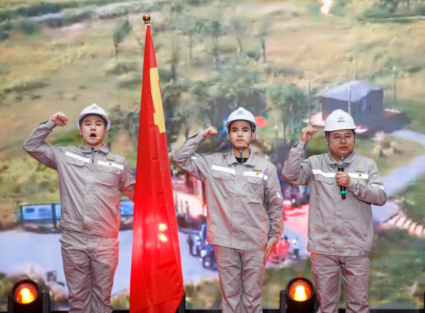 在第三篇章中,青年員工“小劉”充滿激情地分享了參與全球首創廢塑料化學循環項目——東粵化學項目的奮斗經歷。面對無先例可循的挑戰,黨員先鋒隊和青年突擊隊創新運用BIM技術和“立體穿插”施工法,以“三年項目一年建成”的超常規速度,為破解“白色污染”世界難題貢獻了中國化學方案,吹響了向綠色新材料領域進軍的號角。