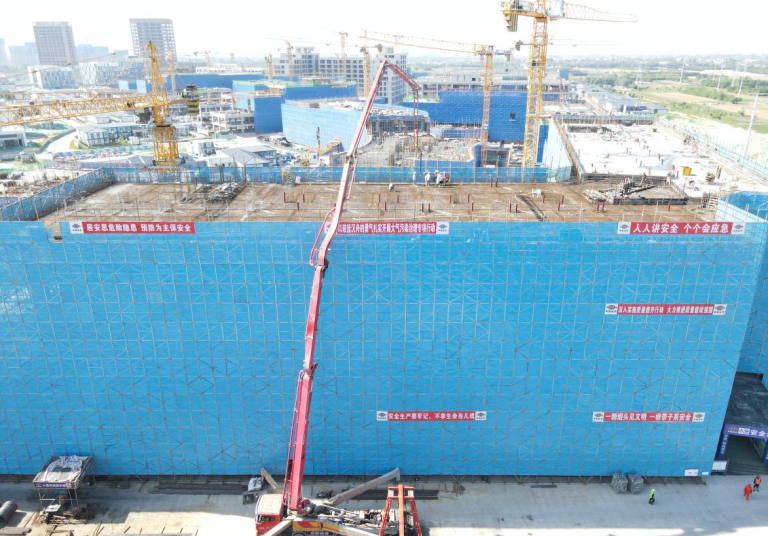 近日,伴隨著混凝土嗡嗡的澆搗聲,由港晨公司承建的岳陽自貿片區(qū)數(shù)字經(jīng)濟產(chǎn)業(yè)綜合體項目C1棟主體結構封頂。