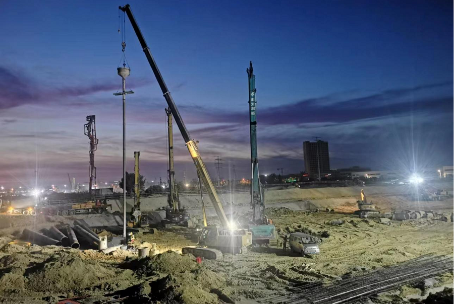 目前,項(xiàng)目A、B、D三個(gè)地塊已全面進(jìn)入大干階段,現(xiàn)場投入鉆機(jī)14臺,保證每天完成樁基180根。現(xiàn)已完成樁基1769根,占三個(gè)地塊5453根樁基的32%,計(jì)劃9月13日前完成三個(gè)片區(qū)全部樁基施工和基坑支護(hù)工作,屆時(shí)項(xiàng)目將全面進(jìn)入基礎(chǔ)施工階段。