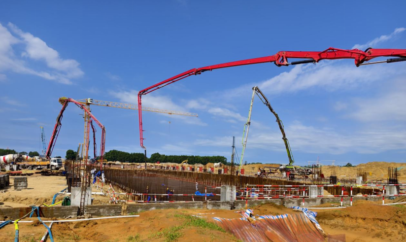 華南公司揭陽東粵化學(xué)項目原料池底板混凝土澆筑成功