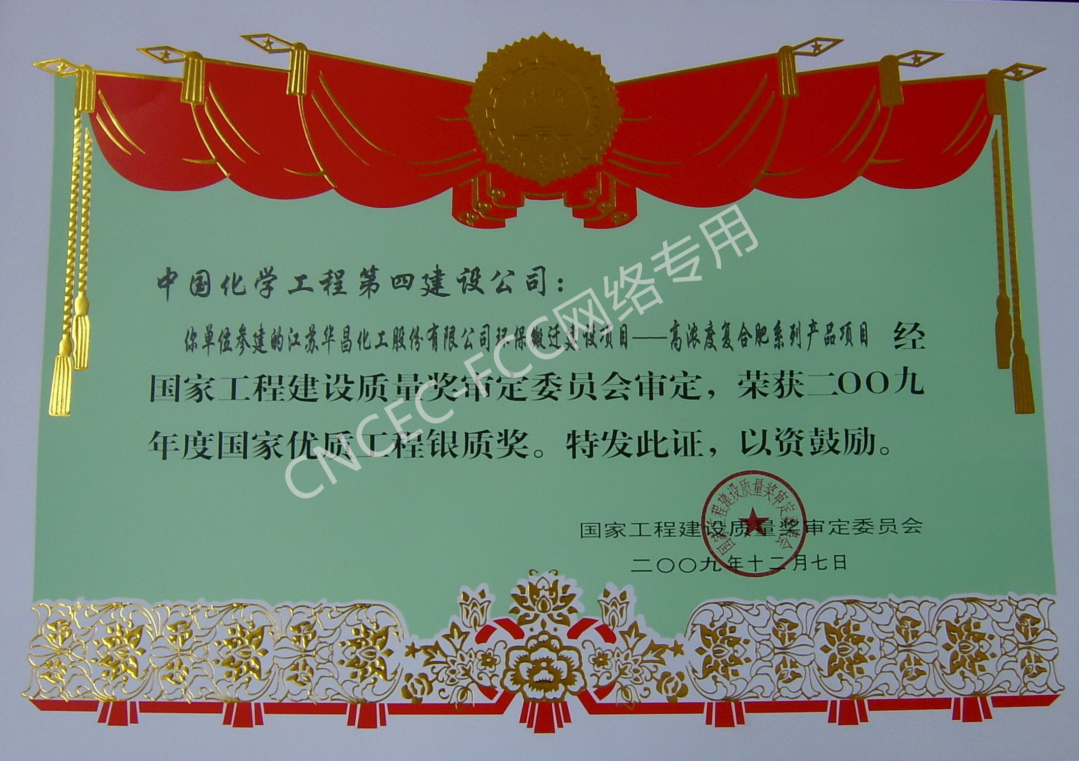 江蘇華昌化工股份有限公司環保搬遷建設項目—高濃度復合肥系列產品項目國家優質工程銀質獎